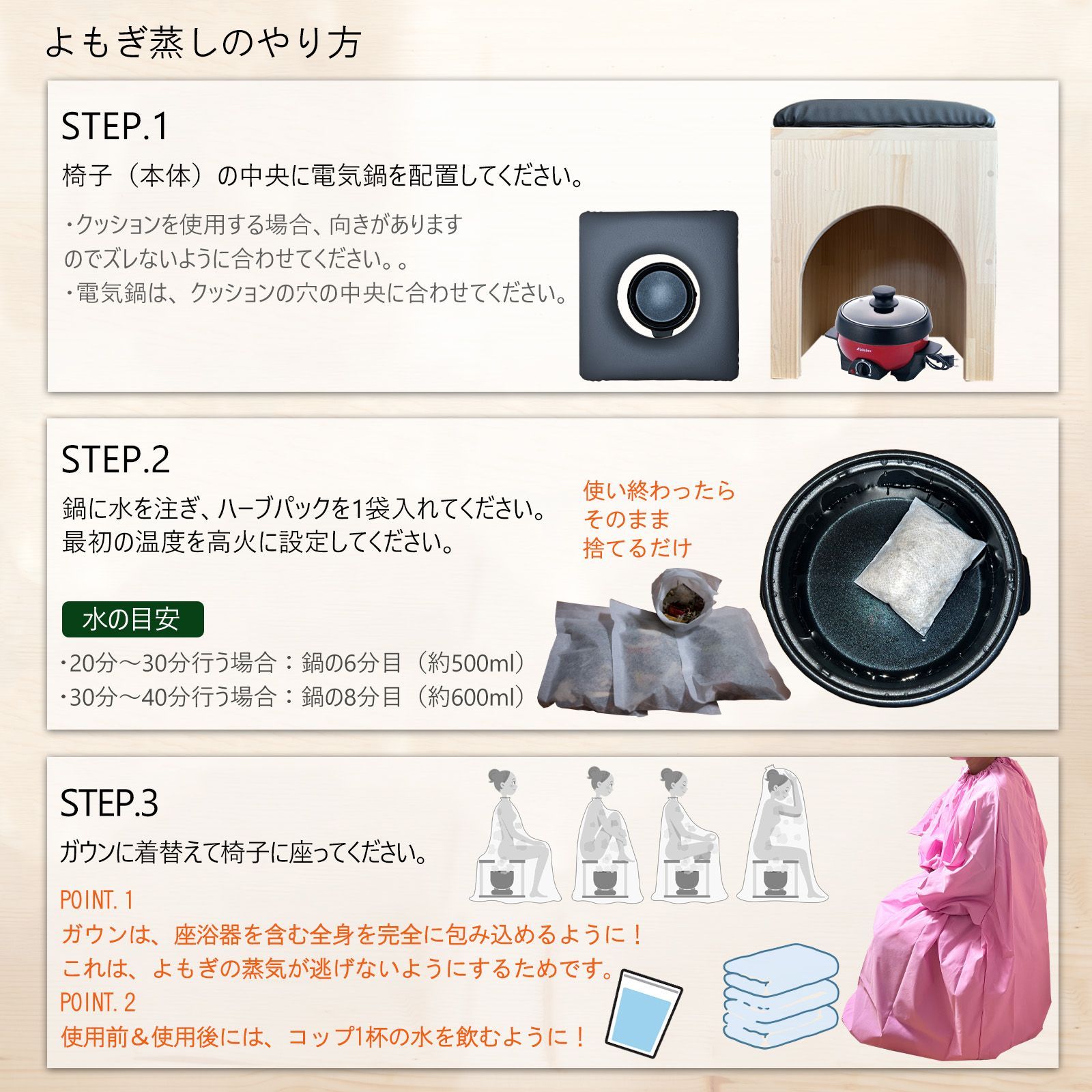 クーポンで2 000円即割引 温楽 よもぎ蒸しセット 5品 日本の家具職人の手作り 椅子 韓国産 2種類よもぎ 2袋 高反発 5cm クッション 長袖ガウン 厚手 ピンクマント 温活 よもぎ蒸し 自宅 MASATAMALESANDTACOS_COM